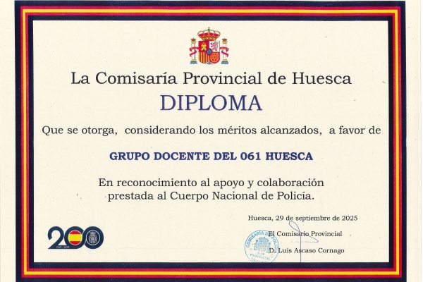 Leer más RECONOCIMIENTO A LA BASE DE HUESCA DEL 061 ARAGÓN POR PARTE DE LA POLICIA NACIONAL