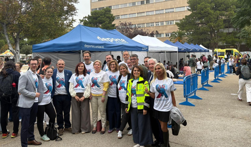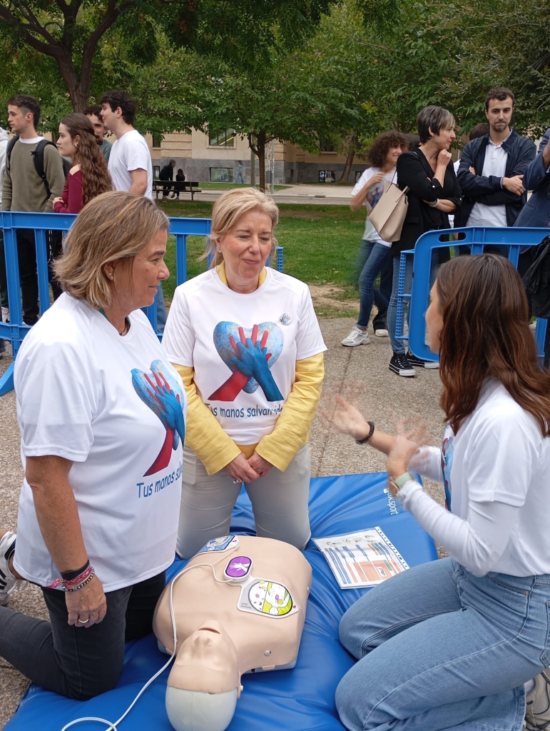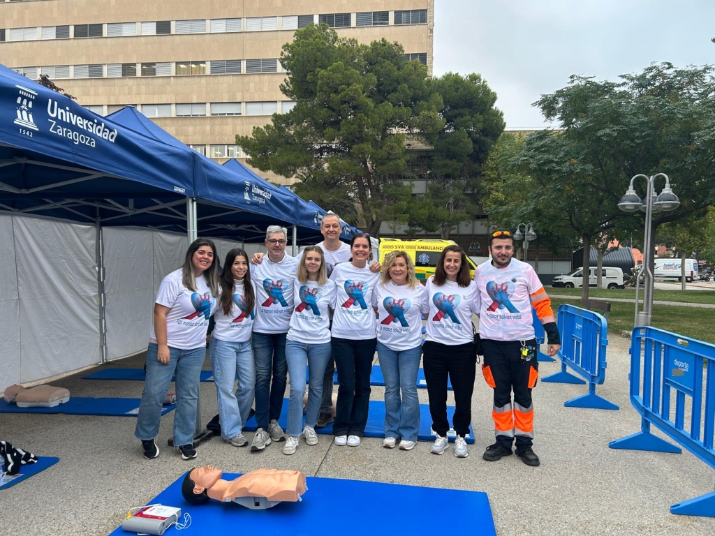 En la celebración del día Europeo de la Parada Cardiaca, el @061aragon, hemos estado en el Campus San Francisco, zona del Estanque, impartiendo talleres de RCP y DEA, para concienciar sobre la importancia de la actuación inmediata ante una parada cardiorrespiratoria.