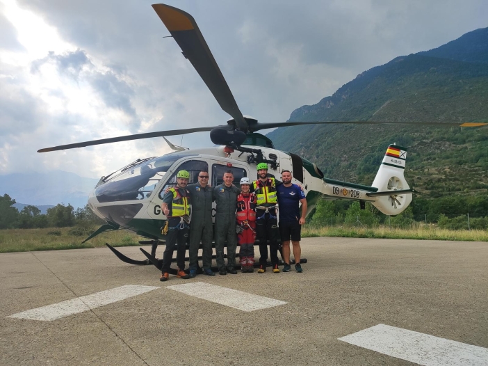 La Unidad Aérea y el GREIM de la Guardia Civil junto con la URM del 061 Aragón forma un equipo humano y profesional de alto nivel, que son referente nacional e internacional en los Rescates de Montaña.