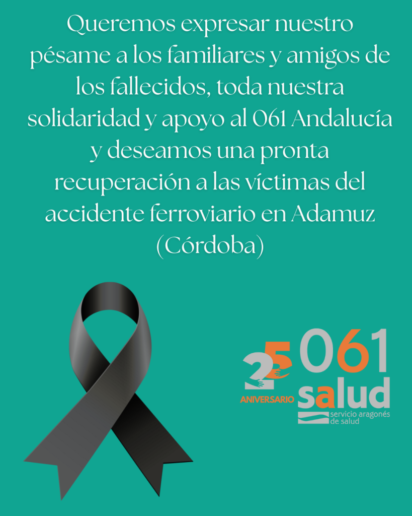 Queremos expresar nuestro pésame a los familiares y amigos de los fallecidos, toda nuestra solidaridad y apoyo al 061 Andalucía y deseamos una pronta recuperación a las víctimas del accidente ferroviario en Adamuz (Córdoba)
